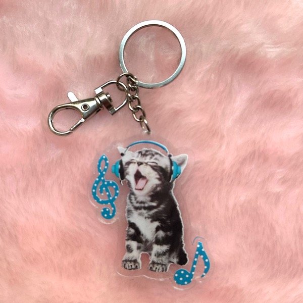 Llavero con mosqueton y dije de acrilico de 6x6cm <3