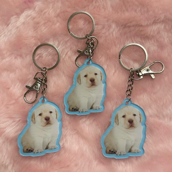 Llavero con dije Acrílico 5x5cm y mosquetón, largo total del llavero 10cm <3