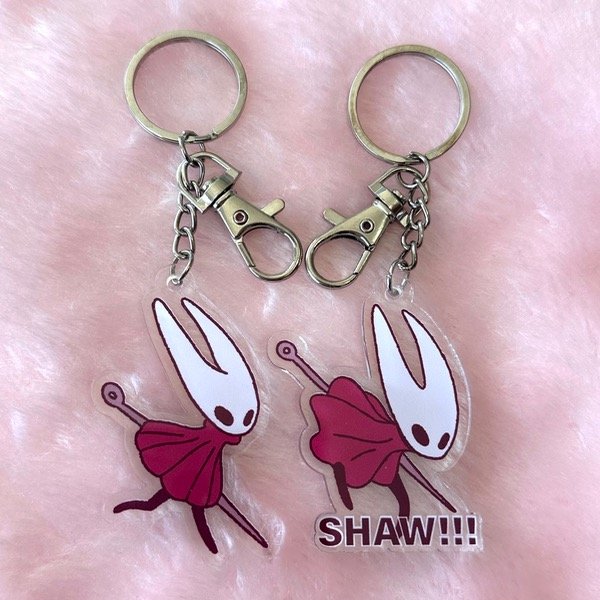 Llavero con dije de acrílico, mosquetón y mostacillas. Largo total del llavero 10cm.