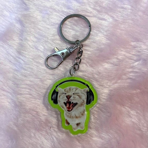 Llavero con mosqueton y dije de acrilico de 6x6cm <3